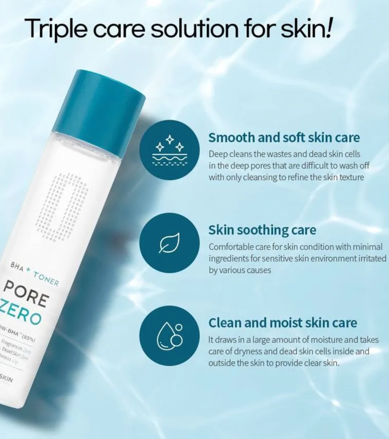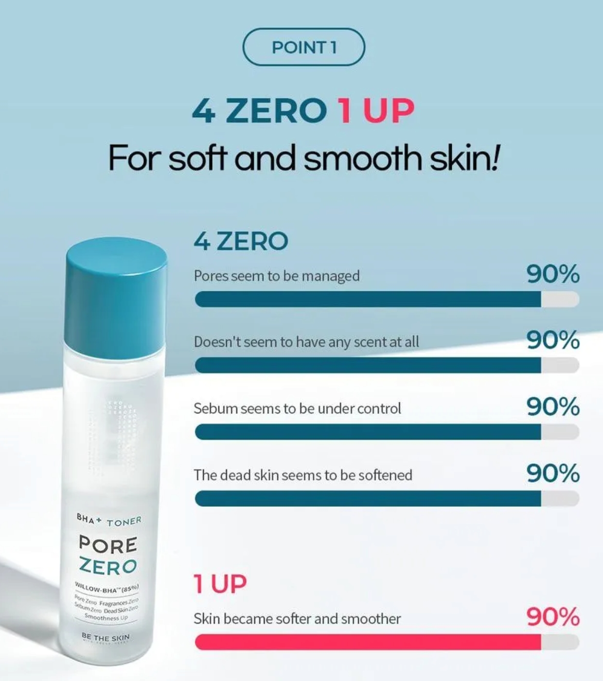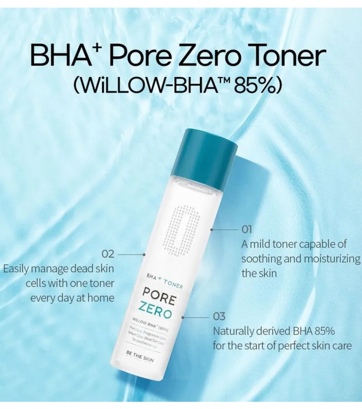 El BHA+ Pore Zero Toner de Be The Skin es un tónico facial exfoliante y calmante que ayuda a equilibrar la piel, reducir impurezas y afinar los poros sin causar irritación.