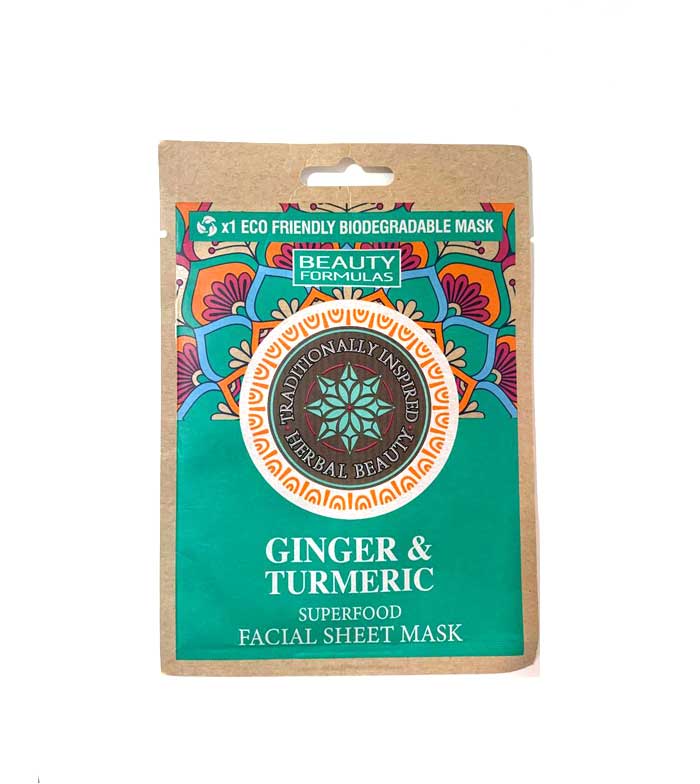 Mascarilla facial de papel de [Beauty Formulas] con jengibre y cúrcuma.