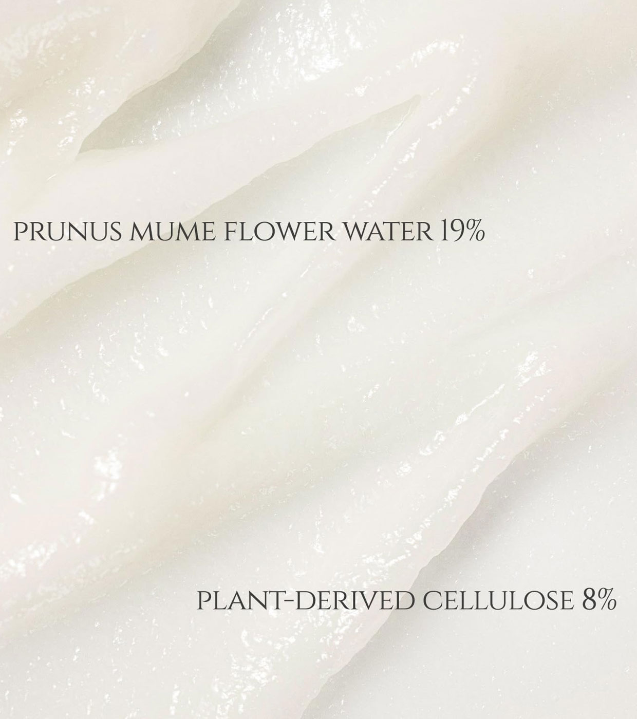 Water, Prunus Mume Flower Water, Cellulose, Methypropandiol, 1,2-Hexandiol, Carbomer, Arginine, Ethylhexylglycerin, Allantoin, Sorbitol, Pyrus Malus (Apple) Fruit Extract, Camellia Sinensis Leaf Extract, Houttuynia Cordata Extract, Nelumbo Nucifera Flower Extract, Oryza Sativa (Rice) Extract, Prunus Mume Fruit Extract, Vaccinium Angustifolium (Blueberry) Fruit Extract, Butylene Glycol, Disodium EDTA