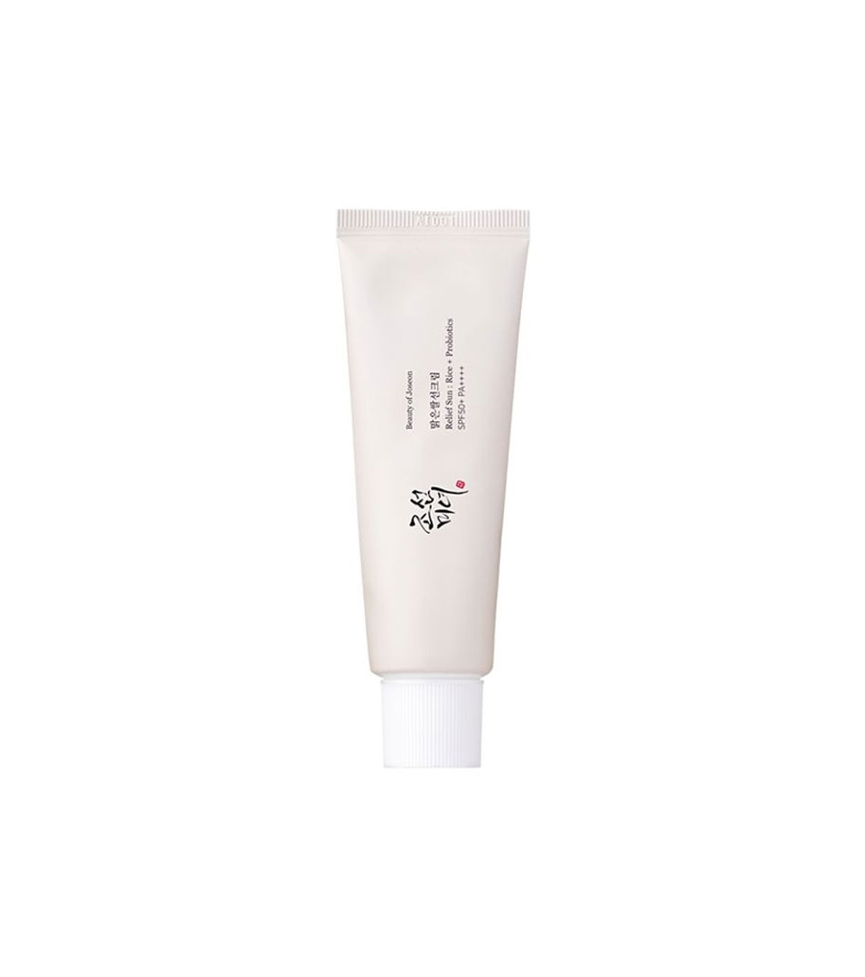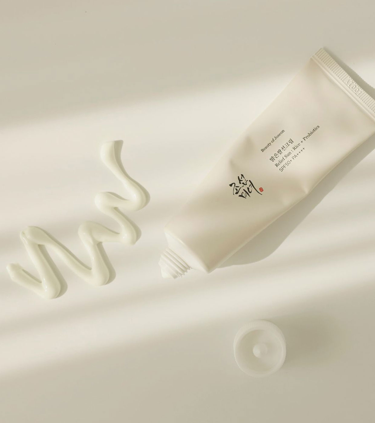 Relief Sun: Rice + Probiotics de Beauty of Joseon es un protector solar vegano que ofrece una protección eficaz contra los dañinos rayos del sol, mientras proporciona hidratación y nutrición a la piel.