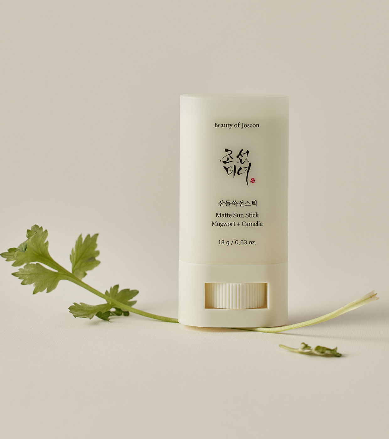 Matte Sun Stick: Mugwort + Camelia (SPF 50+ PA++++) de Beauty of Joseon es un protector solar vegano en formato stick que ofrece una protección eficaz contra los rayos del sol mientras proporciona un acabado mate.