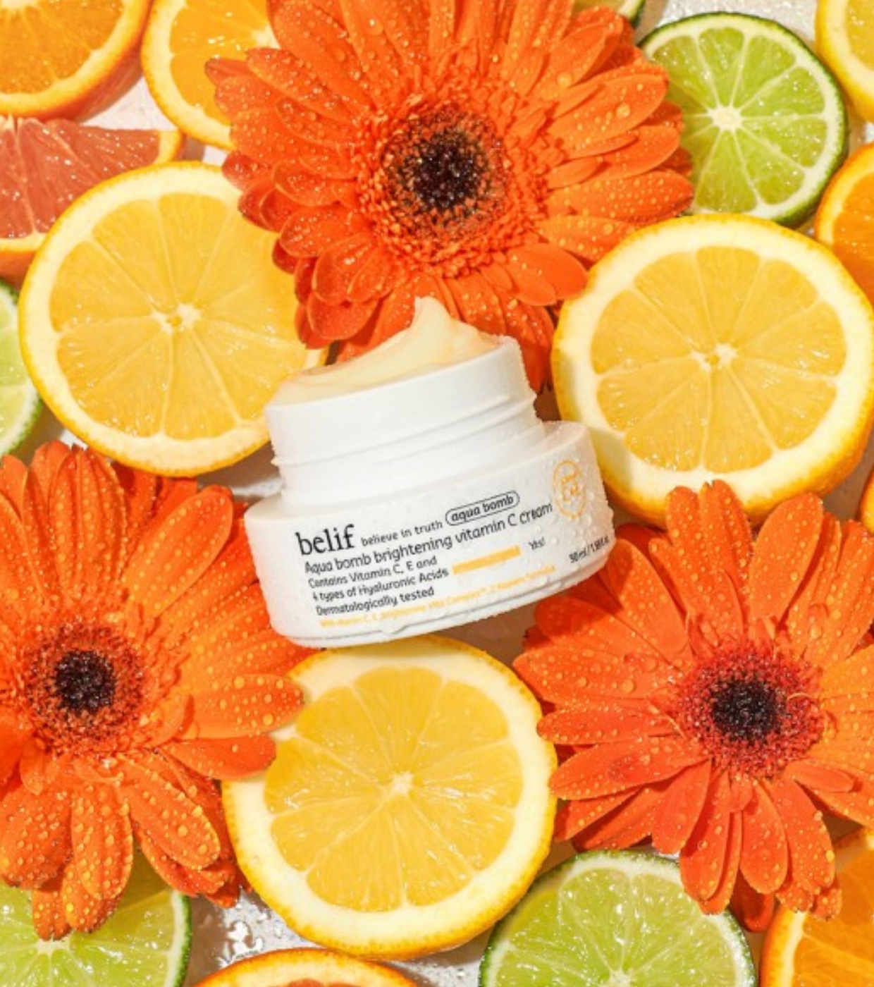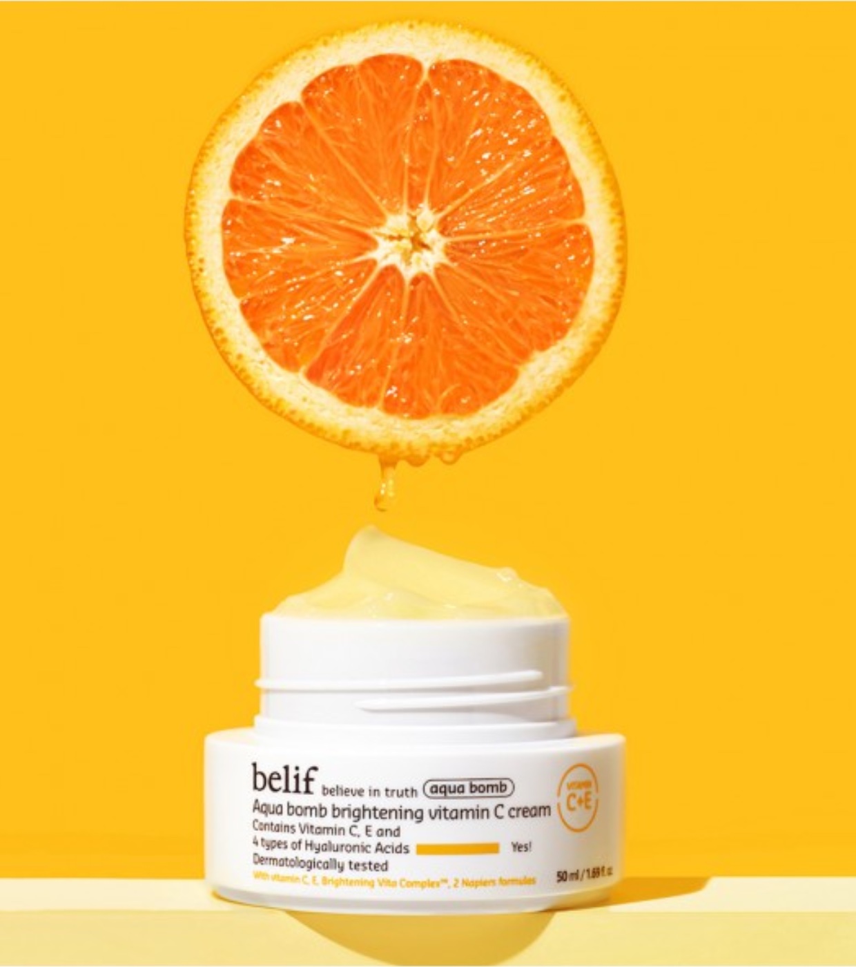 Crema gel hidratante iluminadora con vitamina C Aqua Bomb de belif.