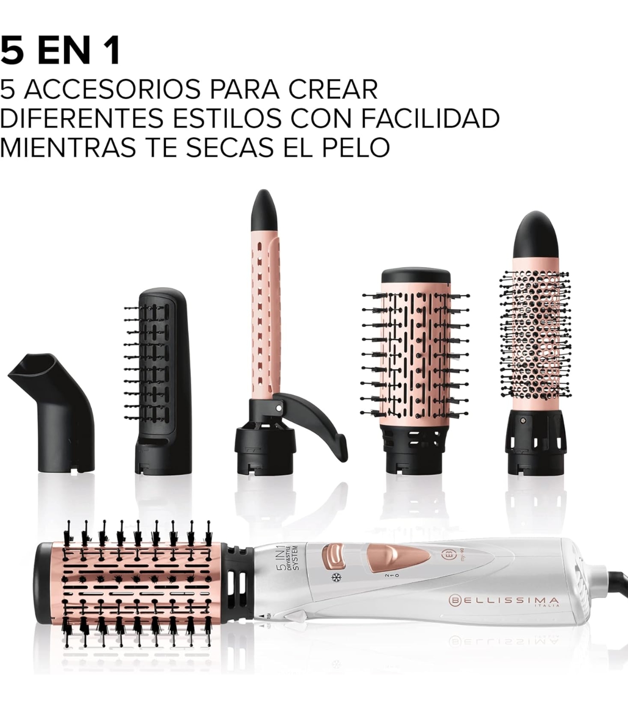 Sus 5 accesorios intercambiables ofrecen la máxima versatilidad para personalizar tu look con facilidad y seguridad (con punta anticalor).