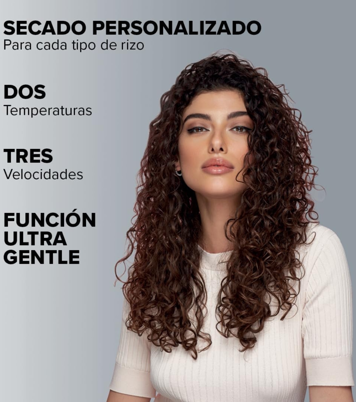 Su exclusivo Sistema Supreme Curl Flow distribuye el aire de forma uniforme y delicada a la temperatura ideal, manteniendo la elasticidad y definición natural de cada rizo.