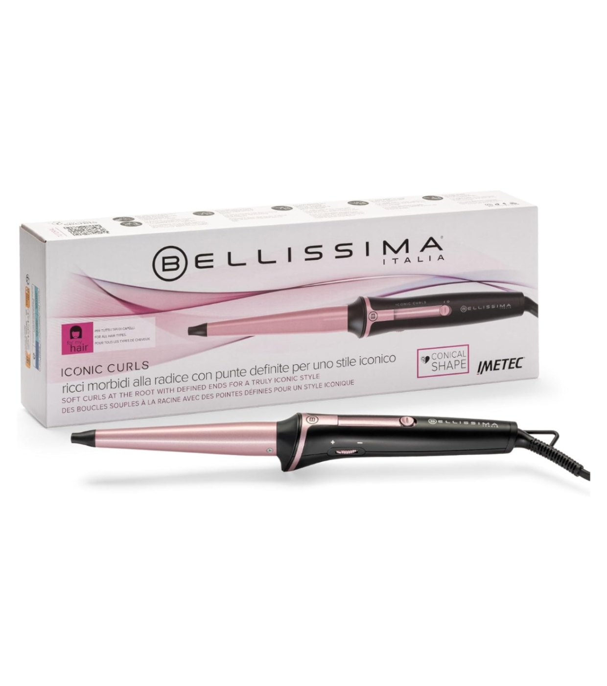 Bellissima Iconic Curl es el rizador cónico perfecto para crear rizos con efecto natural, definidos y llenos de movimiento.