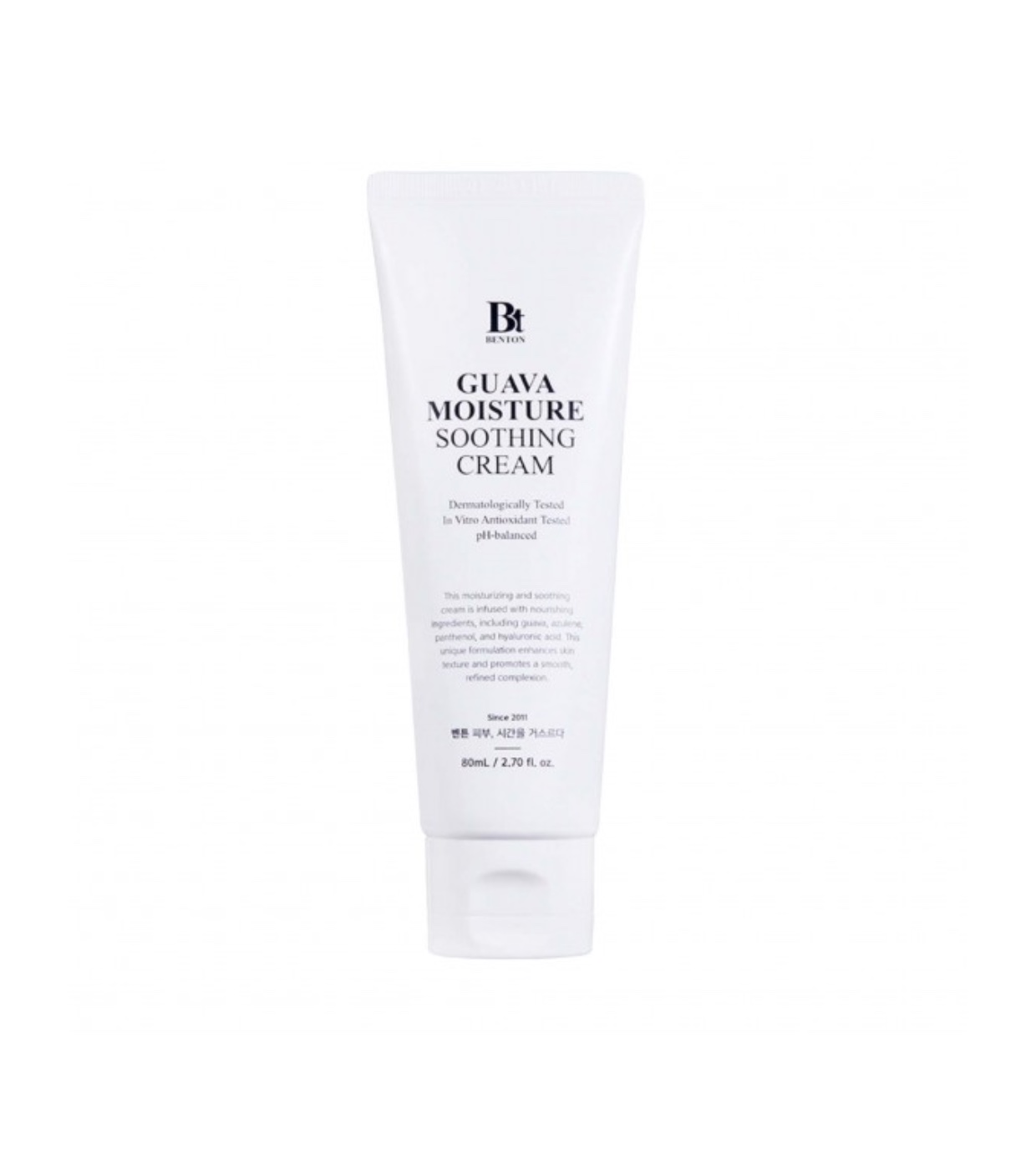 Crema facial hidratante de textura ligera de Benton es una crema hidratante ligera formulada con hojas de guava y ácido hialurónico para lograr una piel más calmada, suave e hidratada.