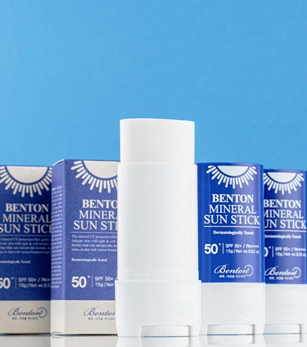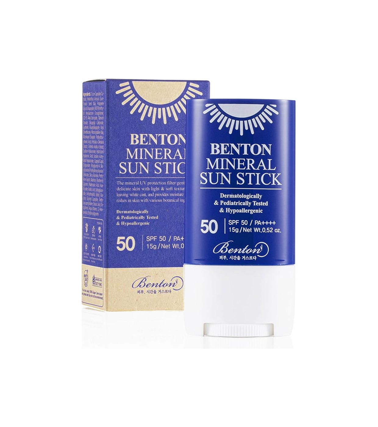 Protector solar mineral SPF50 PA++++ de Benton en formato stick, para una piel perfectamente protegida del sol.