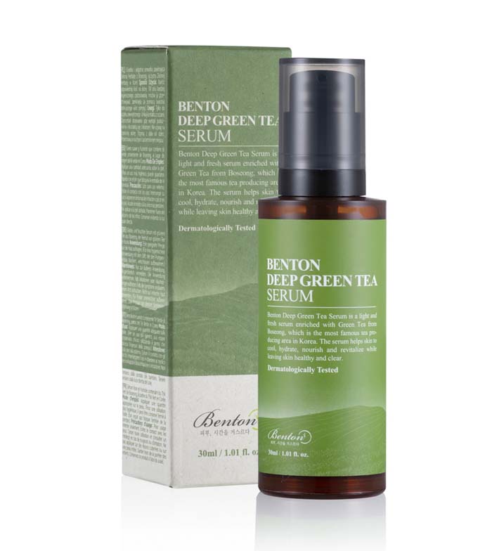 El Sérum Deep Green Tree de Benton contiene un 53% de té verde de BoSeong, el hogar del té verde en Corea.