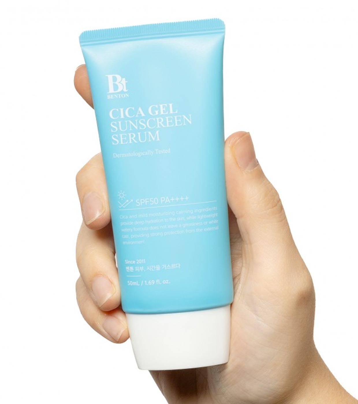 Sérum hidratante y calmante protector solar SPF50+ Cica Gel de Benton.