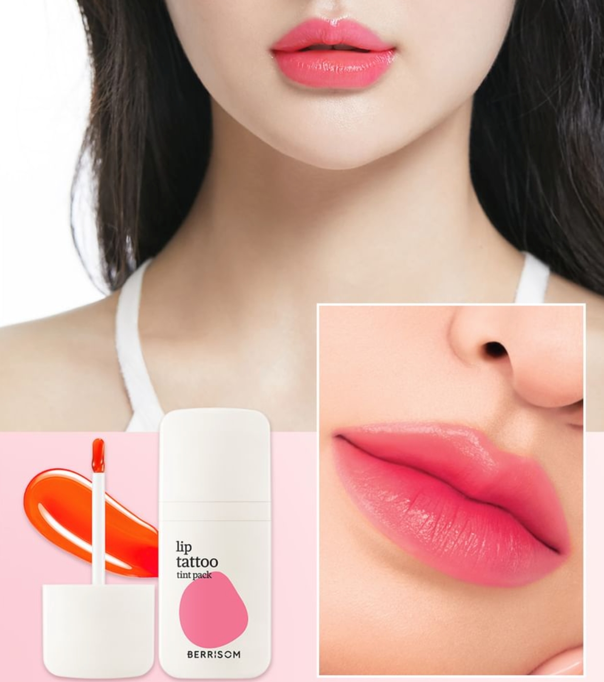 El Lip Tattoo Tint Pack de BERRISOM es un tinte labial peel-off formulado para ofrecer un color duradero, estable y sin transferencia.