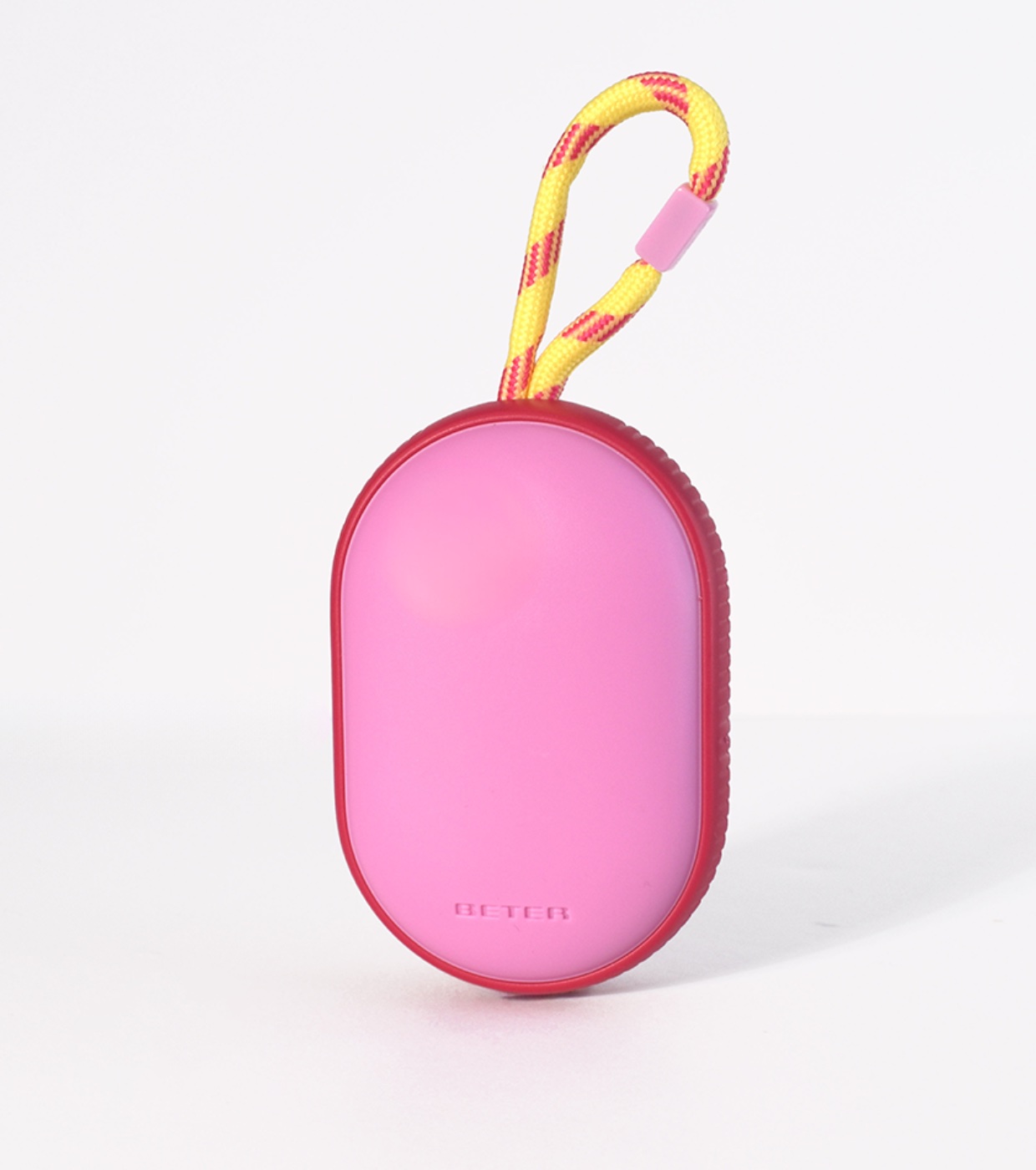 Con un diseño compacto y un práctico cordón para colgar, está fabricado con plástico reciclado, siendo una opción ecológica.