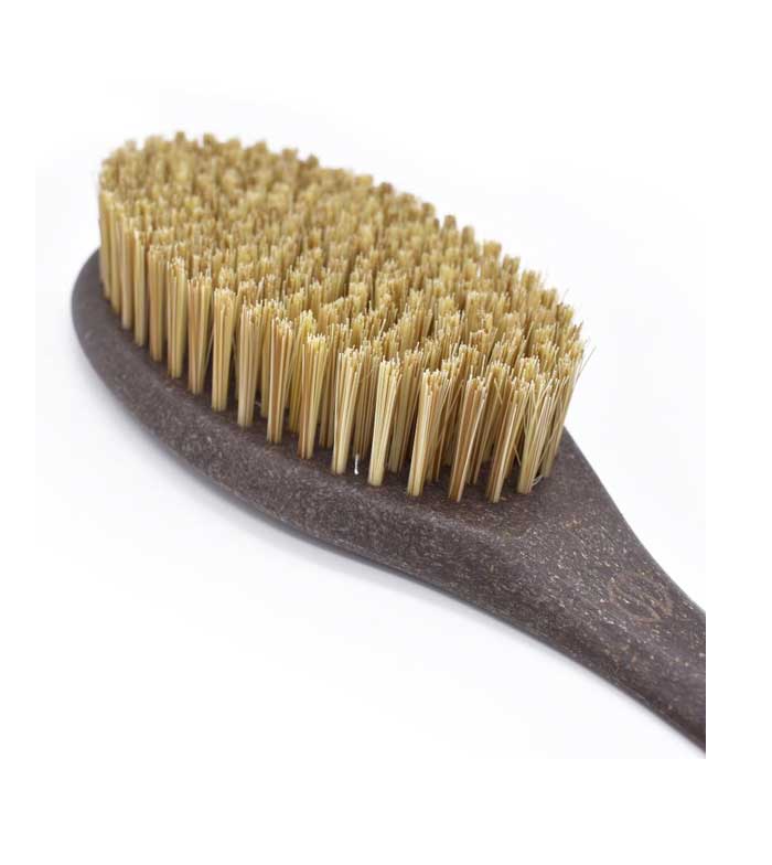 El mango está fabricado con café molido y plástico reciclados y sus cerdas sintéticas son aptas para veganos.