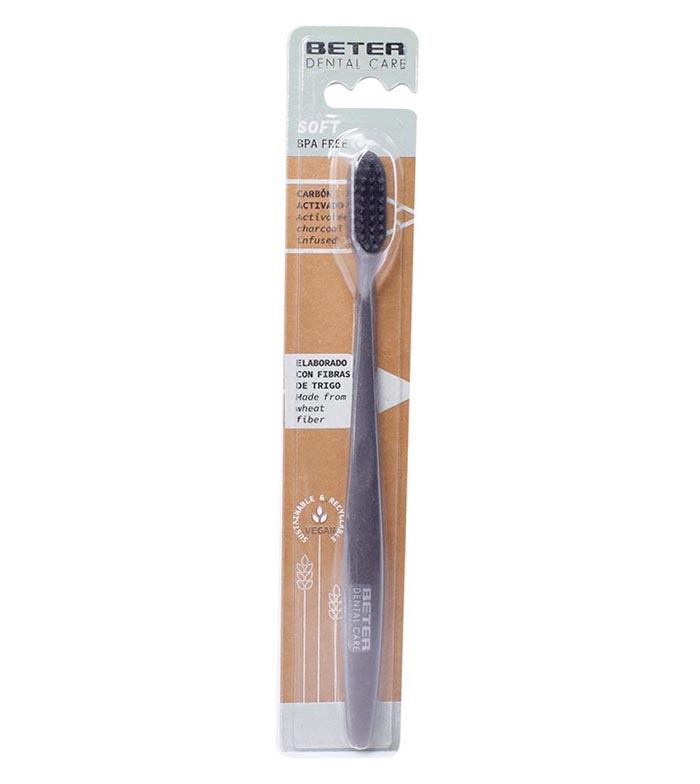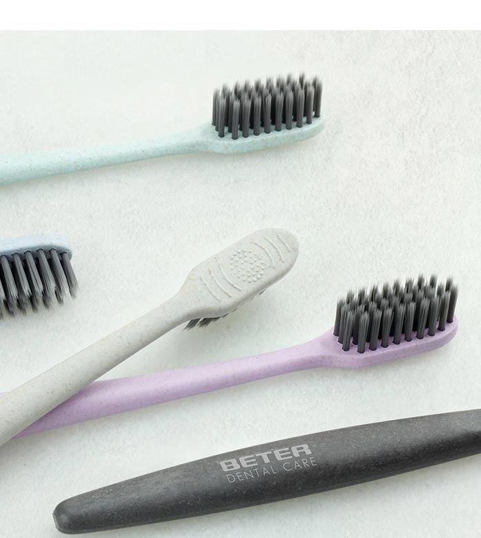 Un cepillo de dientes sostenible y reciclable con un mango elaborado con fibras de trigo.