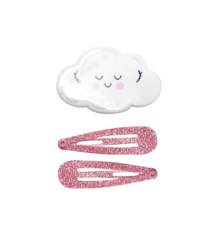 Tres clips para las almas más soñadoras, dos en rosa con purpurina y uno en forma de nube y con carita sonriente.
