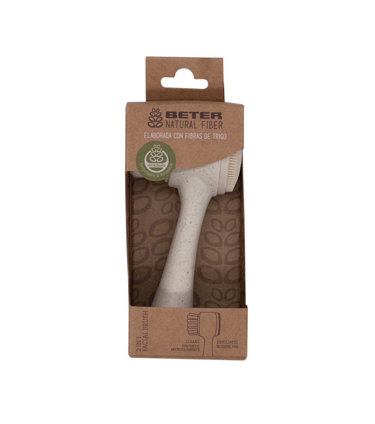 Elaborado con un material natural a base de fibra de trigo, 100% biodegradable. Reduciendo al máximo la presencia de plástico. Pack en cartón certificado FSC.