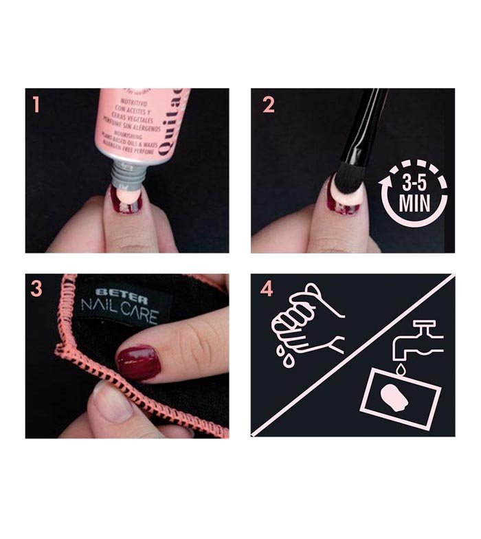El quitaesmalte en crema actúa como una mascarilla, no reseca las uñas y las mantiene suaves y nutridas.