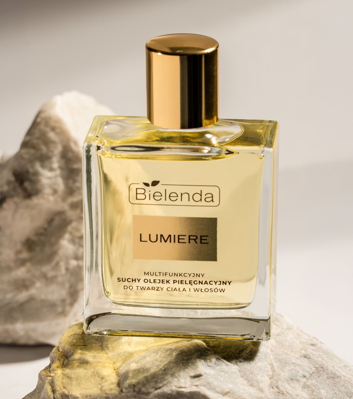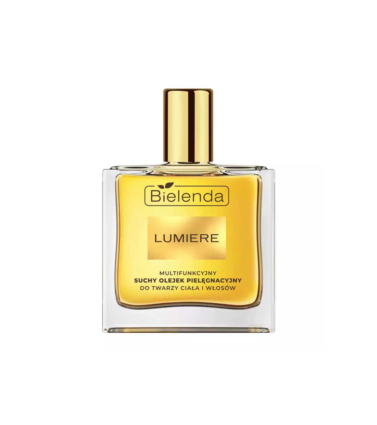 El Aceite Seco Multifuncional Lumiere de Bielenda es una fórmula de lujo diseñada para cuidar en un solo gesto la piel del rostro, el cuerpo y el cabello.
