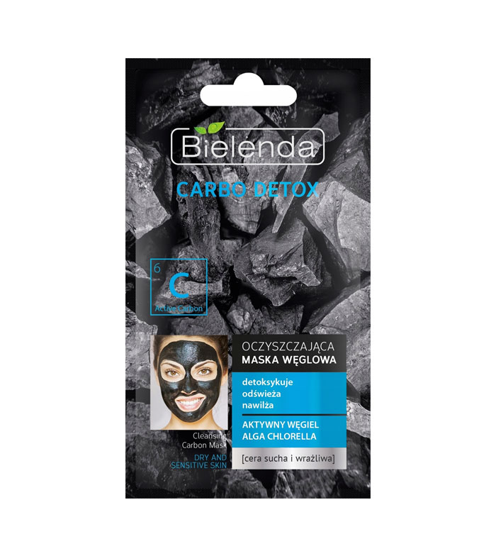 Mascarilla de carbono desintoxicante que mejora al instante la condición de la piel seca y sensible.