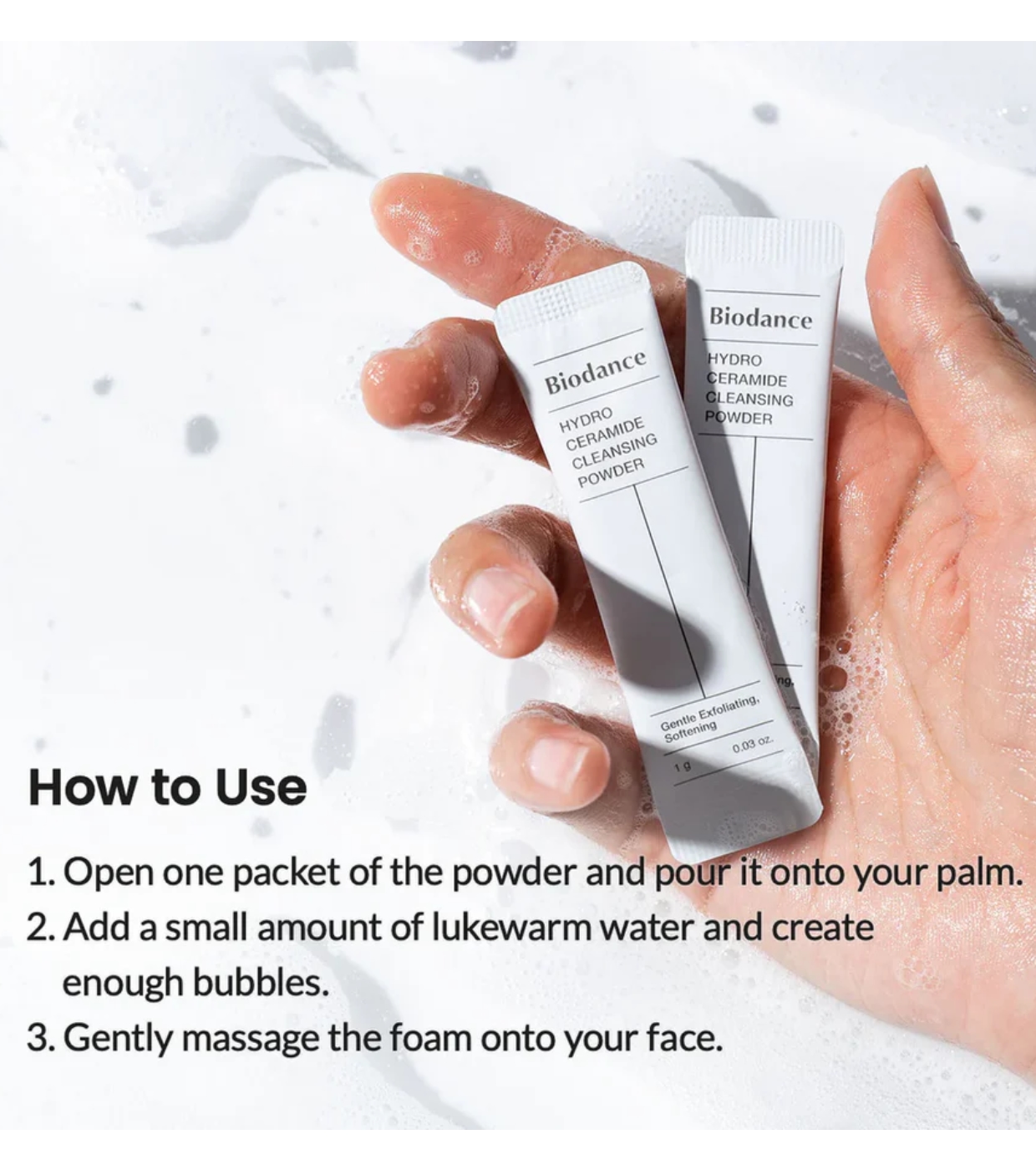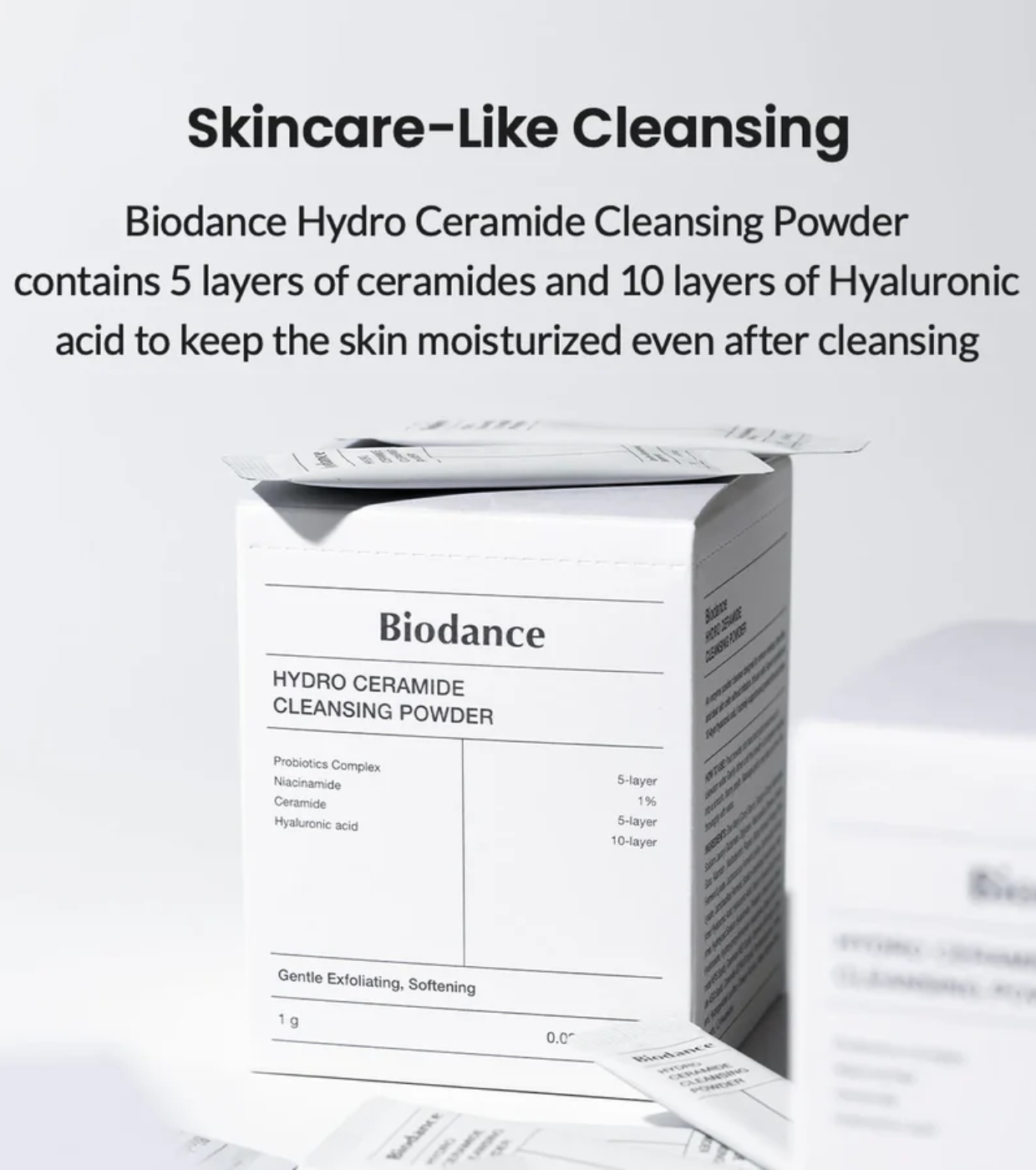 Limpieza profunda, hidratación y cuidado en un solo paso con el limpiador en polvo Hydro Ceramide Cleansing Powder de Biodance.