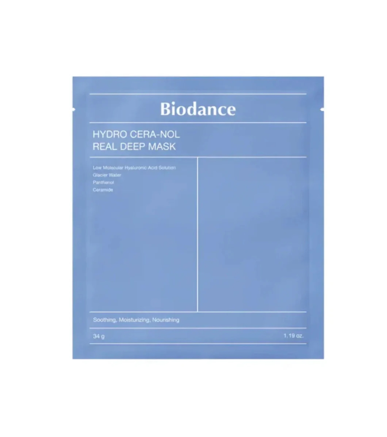 La mascarilla facial Hydro Cera-Nol Real Deep de Biodance ayuda a reponer la hidratación de la piel y regenera la función barrera.