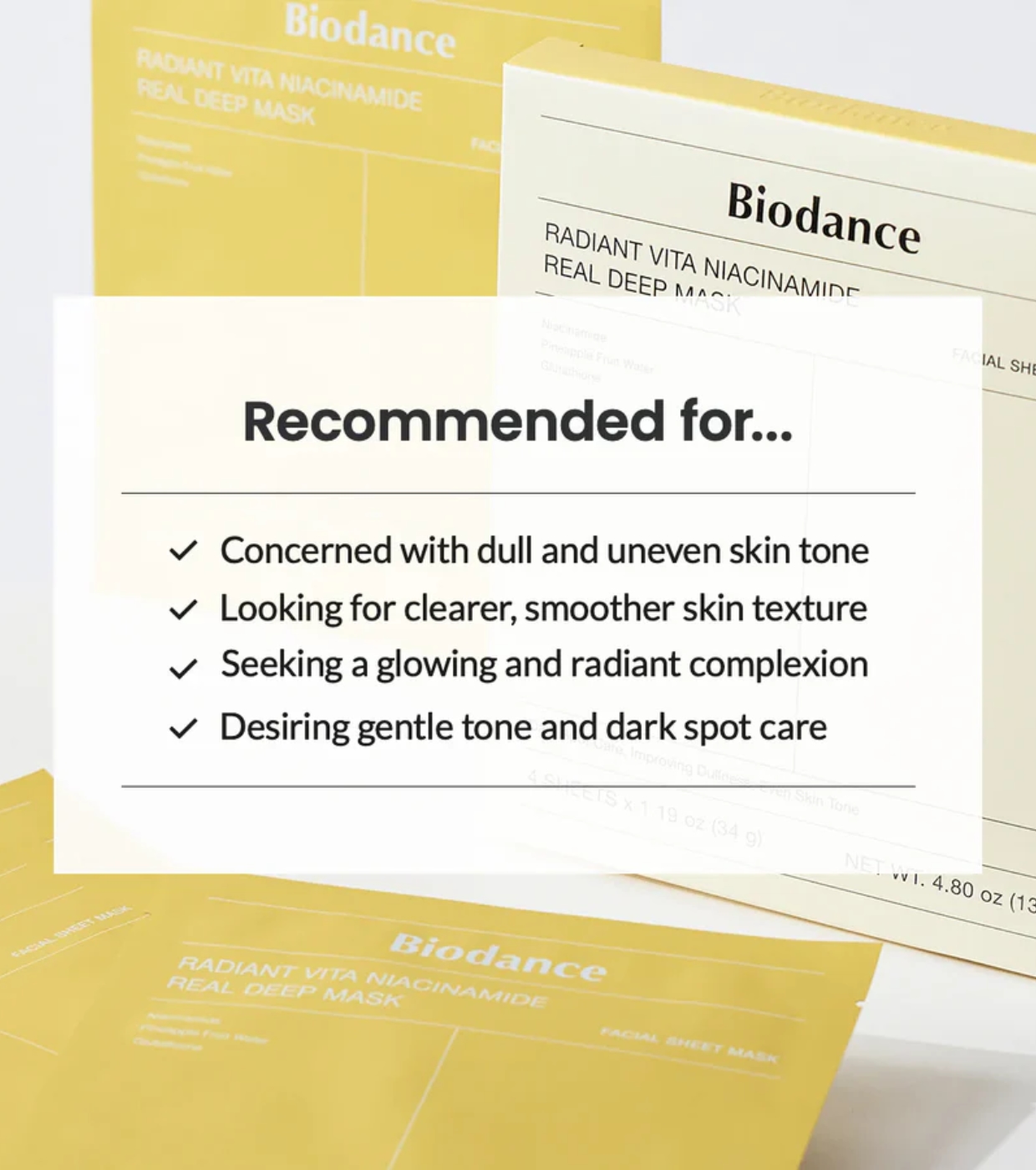Descubre la mascarilla facial viral que transforma tu piel en minutos, la mascarilla facial Radiant Vita Niacinamide de Biodance.