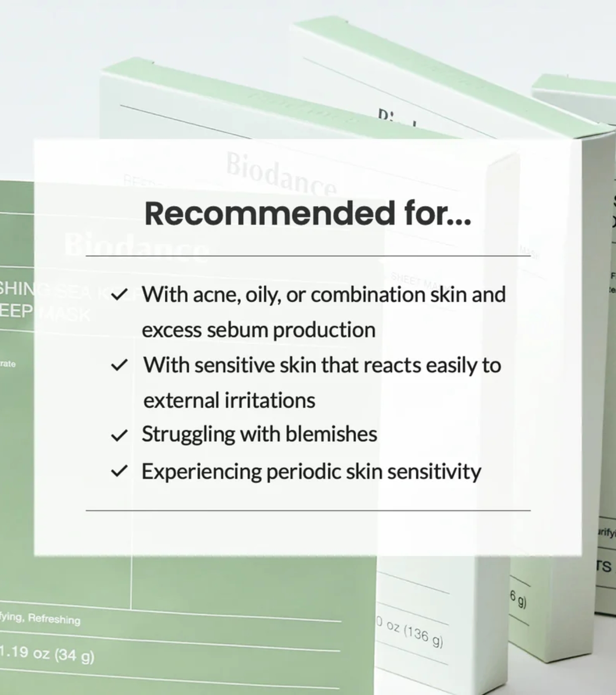 Renueva y seboregula tu piel con la mascarilla facial Refreshing Sea Kelp de Biodance.