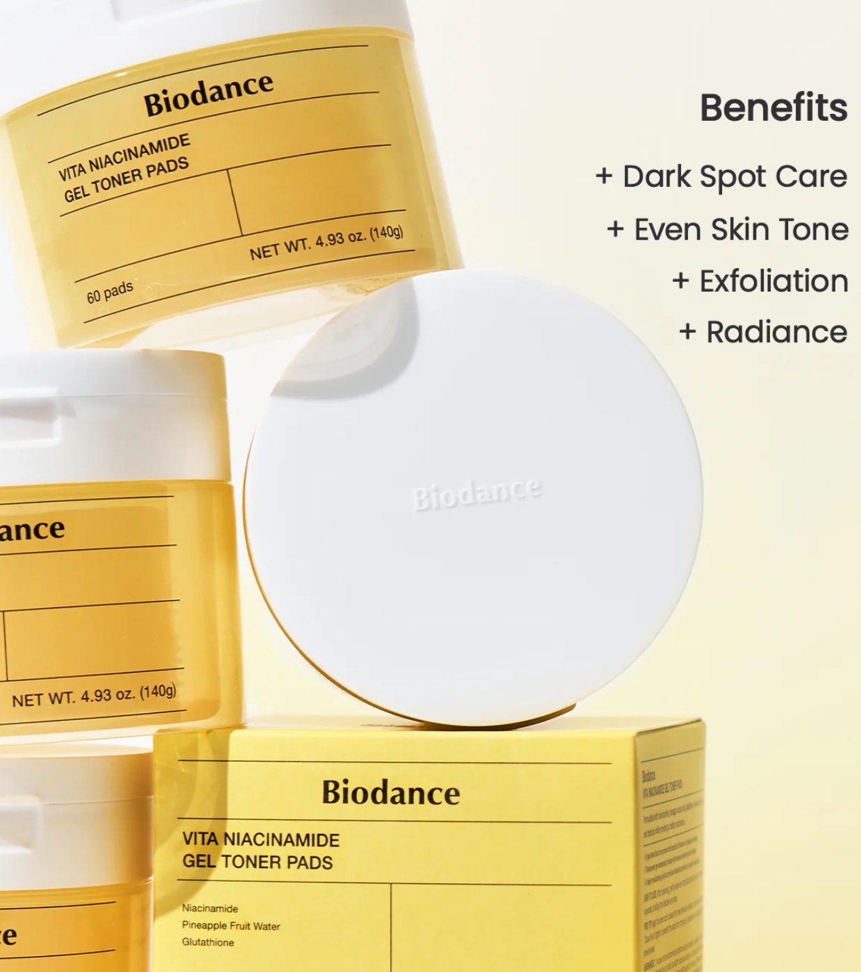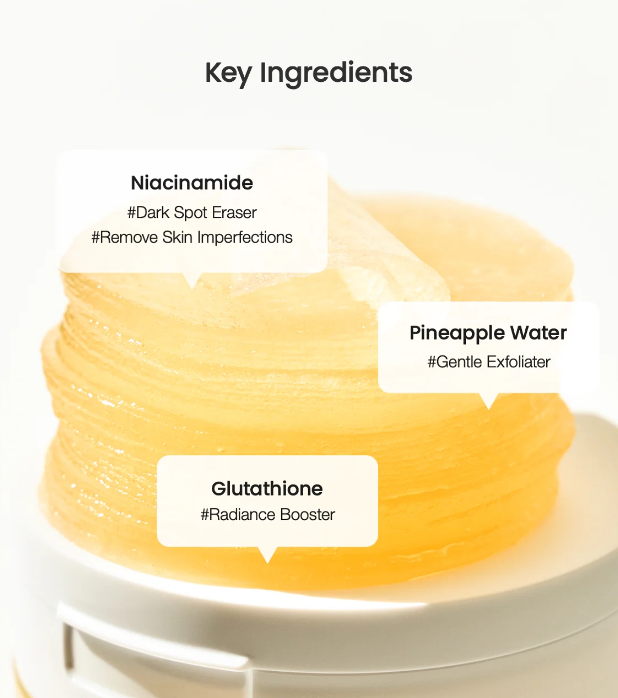 Descubre una piel más luminosa, suave y uniforme con las Vita Niacinamide Gel Toner Pads. El aliado perfecto para tu rutina de cuidado diario.