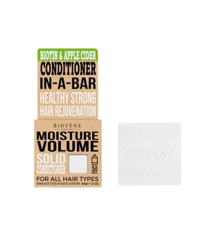 Reemplaza el acondicionador en botella de plástico por acondicionador solido elaborado con ingredientes naturales de la máxima calidad como cera de abejas, manteca de karité, biotina, extracto de manzana y sidra de manzana natural.