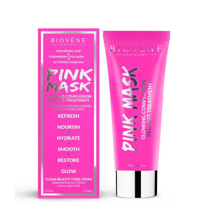 Limpia y refresca tu piel con la mascarilla peel-off con carbón Glowing Complexion Pink Mask de Biovène.