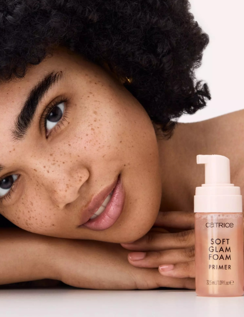 La prebase en espuma Soft Glam de Catrice suaviza la piel y mejora la aplicación de la base.