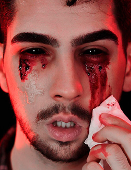 Este maquillaje es un clásico atemporal del terror que nunca falla. Da igual si tu disfraz es de zombie, enfermero maldito, o simplemente quieres añadir un toque sangriento a tu look de calle: las heridas realistas con sangre falsa siempre impactan. Es rápido, fácil de hacer y, lo mejor, ¡muy divertido!