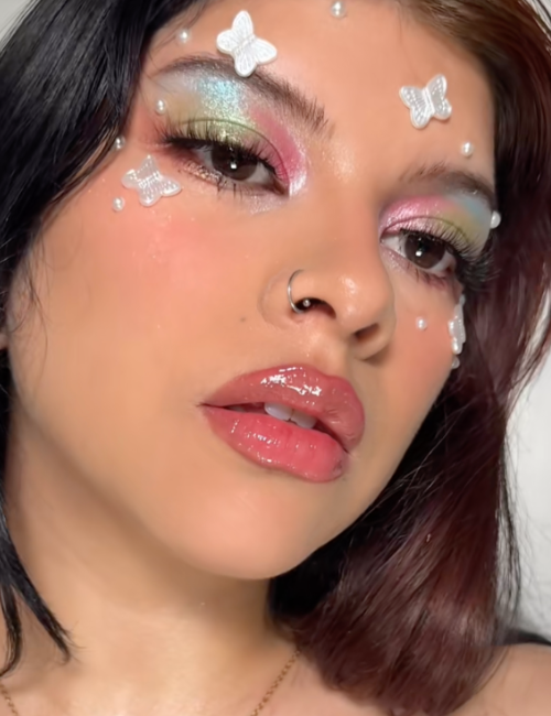 Si el clean look representa el minimalismo, esta tendencia es todo lo contrario: creatividad, color y brillo sin miedo. Inspirado en los looks que ha llevado Zara Larsson, este maquillaje combina sombras vibrantes, delineados llamativos y detalles de perlas o glitter que convierten el rostro en una auténtica declaración de estilo.