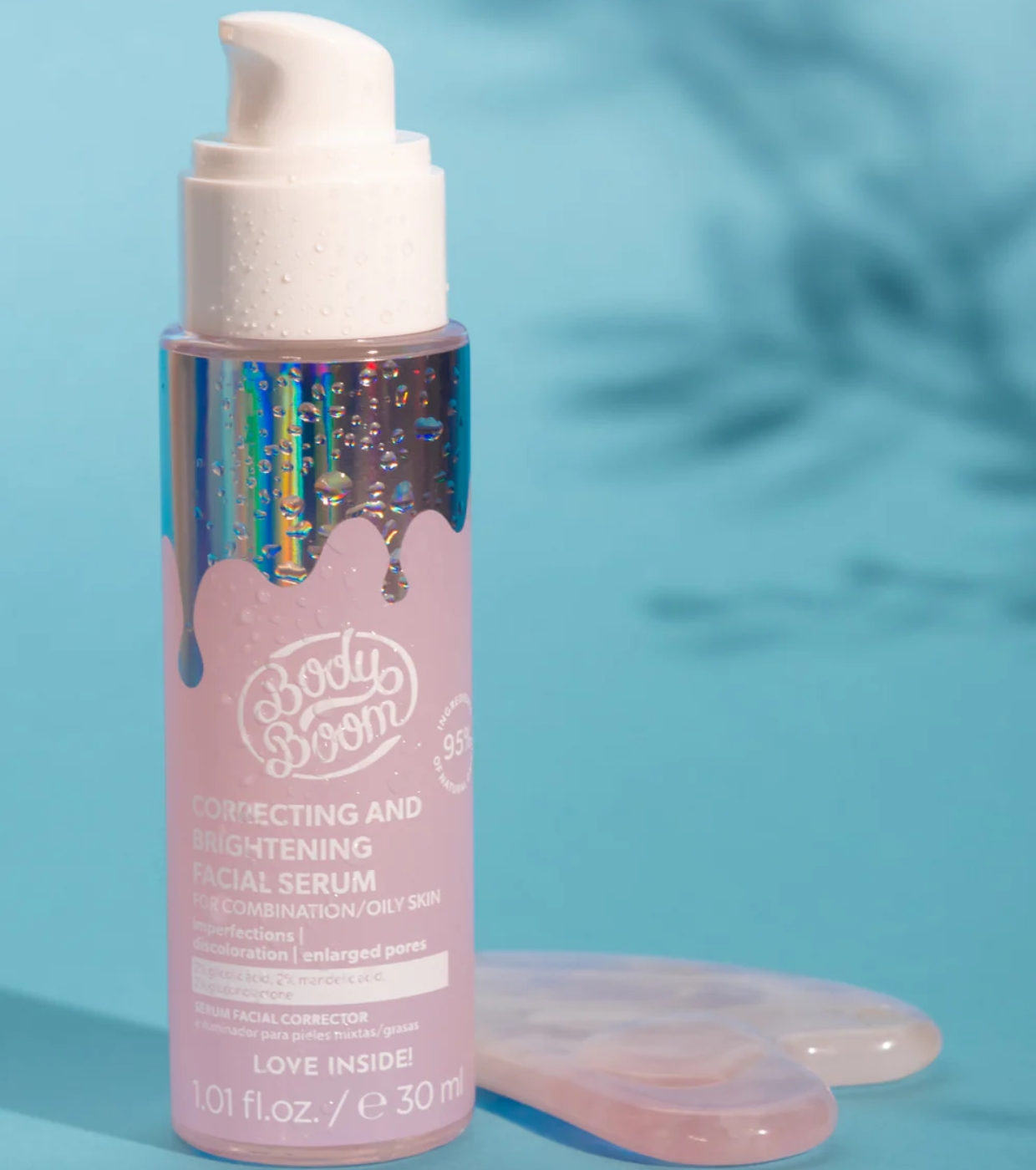 Haz que tu piel resplandezca con el Sérum Corrector e Iluminador de Bodyboom, diseñado para revitalizar y rejuvenecer tu cutis con facilidad.