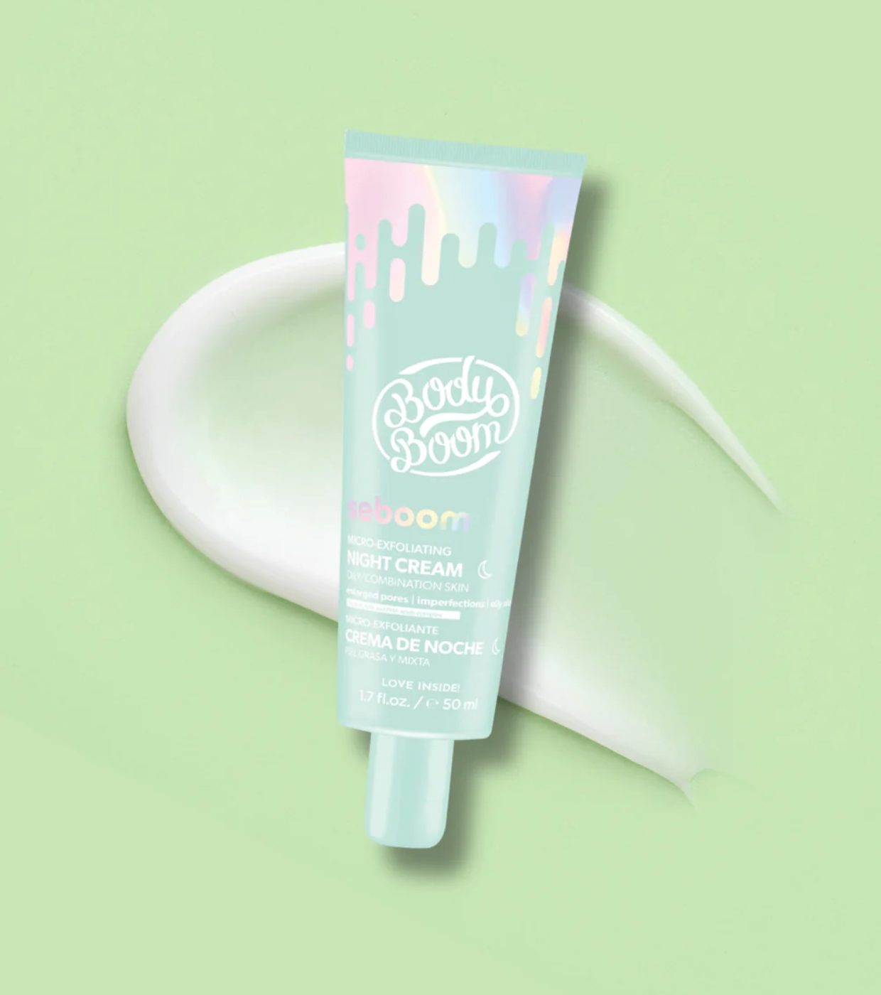Dale a tu piel un reinicio total con la Crema facial de noche microexfoliante de Bodyboom, tu aliada para una piel suave y luminosa.