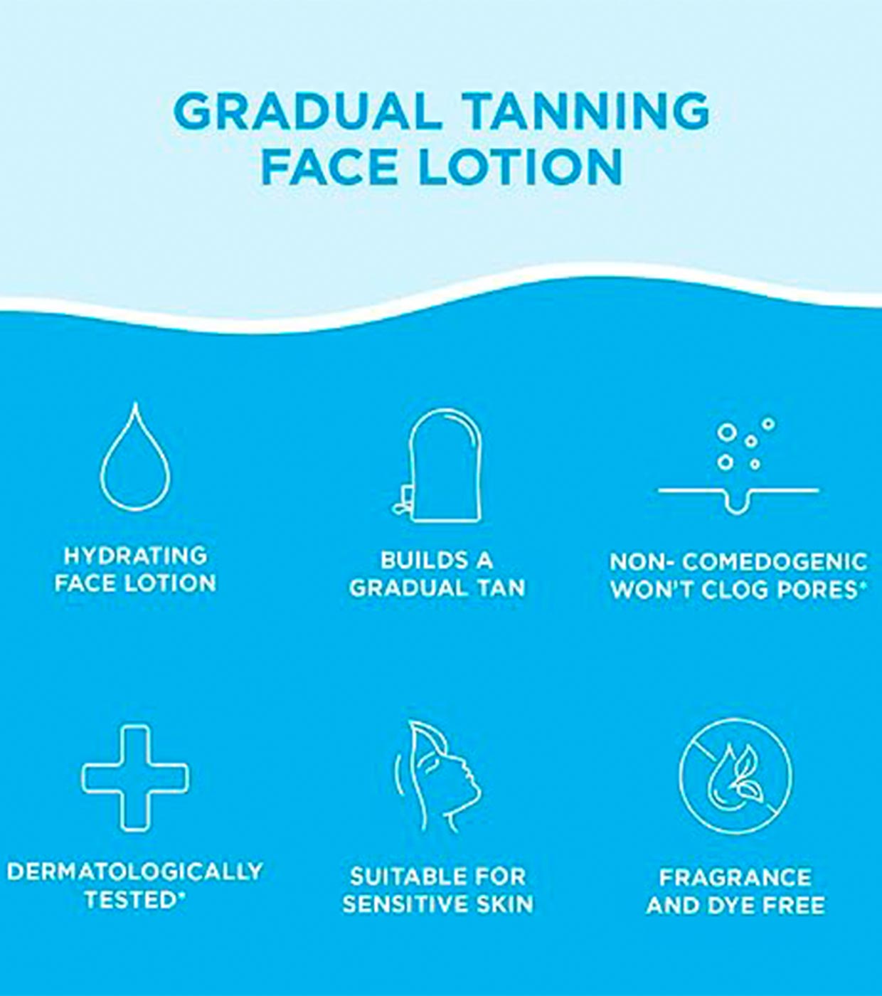 Perfecta para su aplicación diaria, la Loción Facial Bronceado Gradual no es comedogénica, está dermatológicamente probada y es apta para pieles sensibles, dejándola nutrida y resplandeciente con cada aplicación.