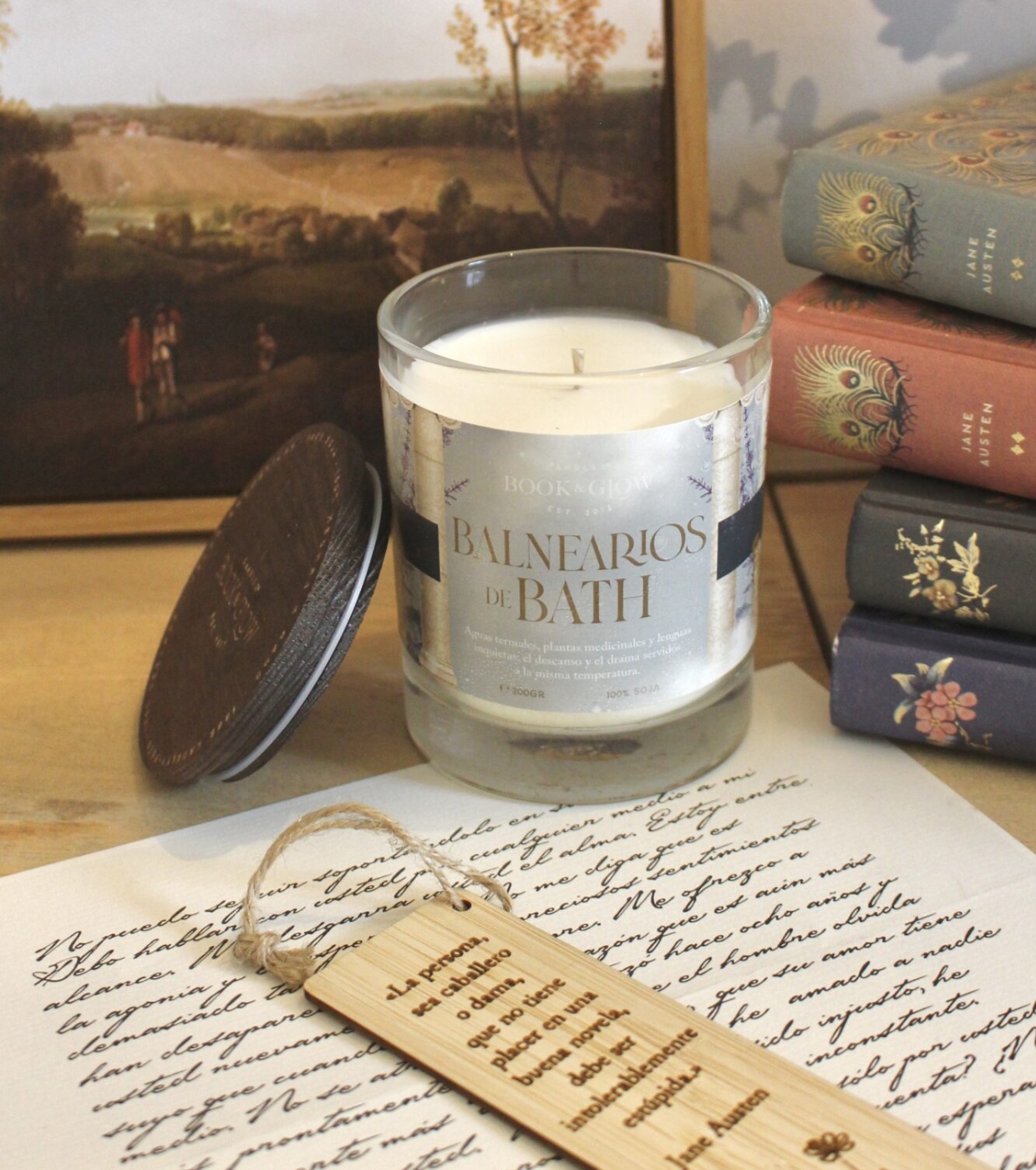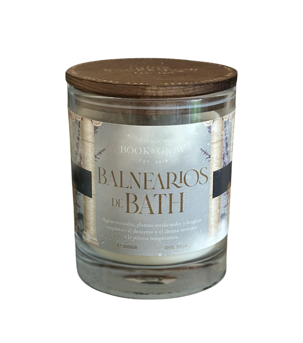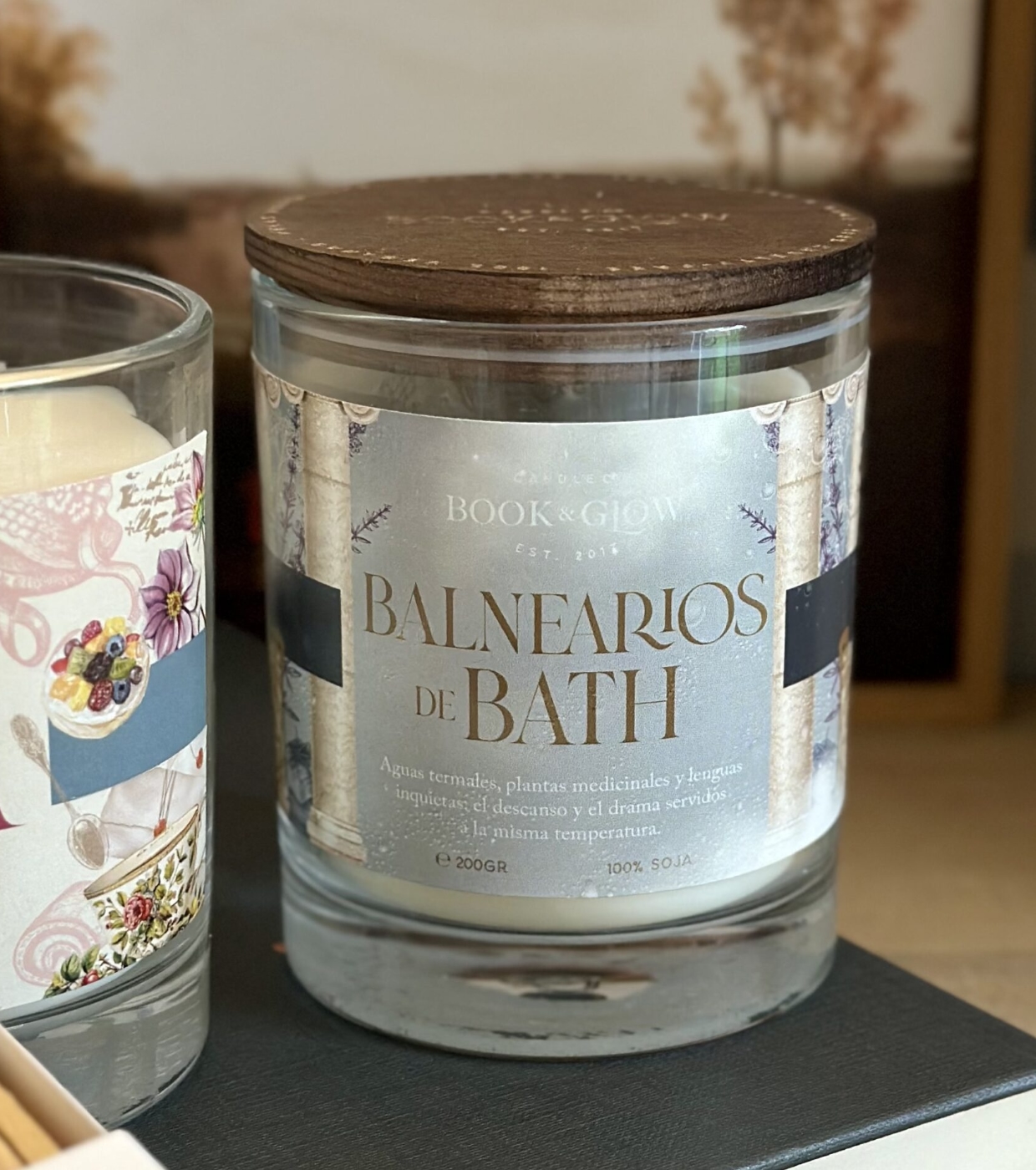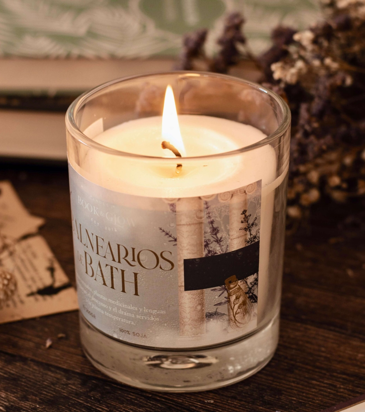 Descubre la vela de soja vegana Balnearios de Bath de Book and Glow.