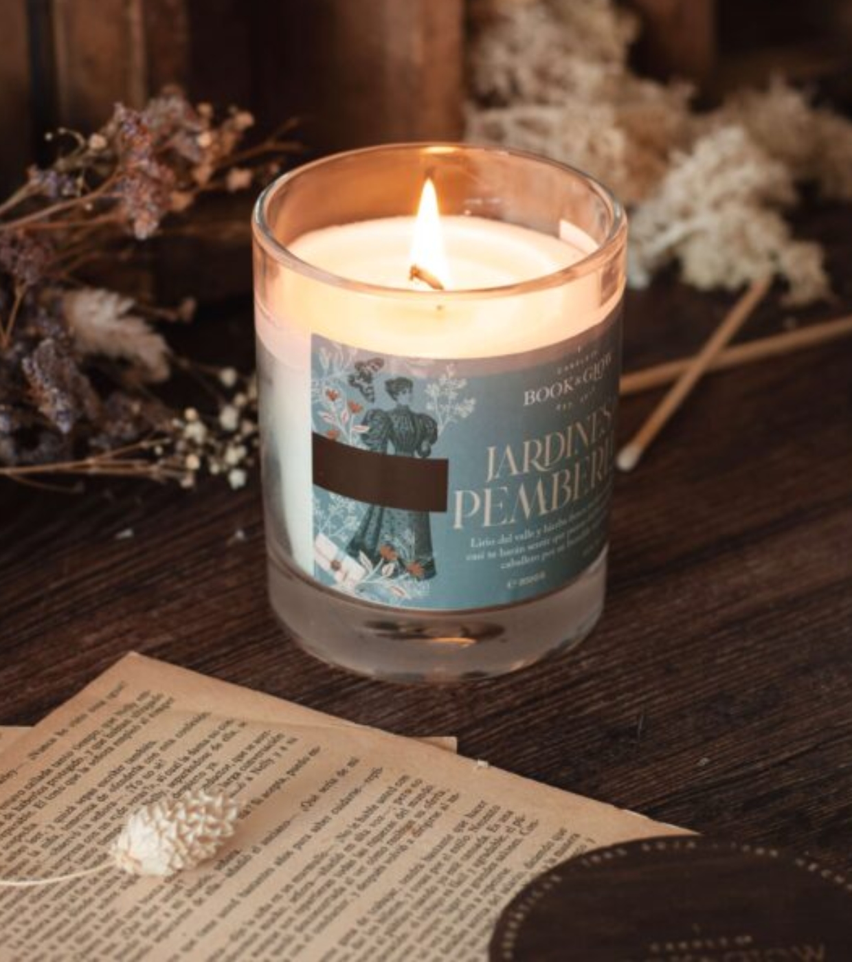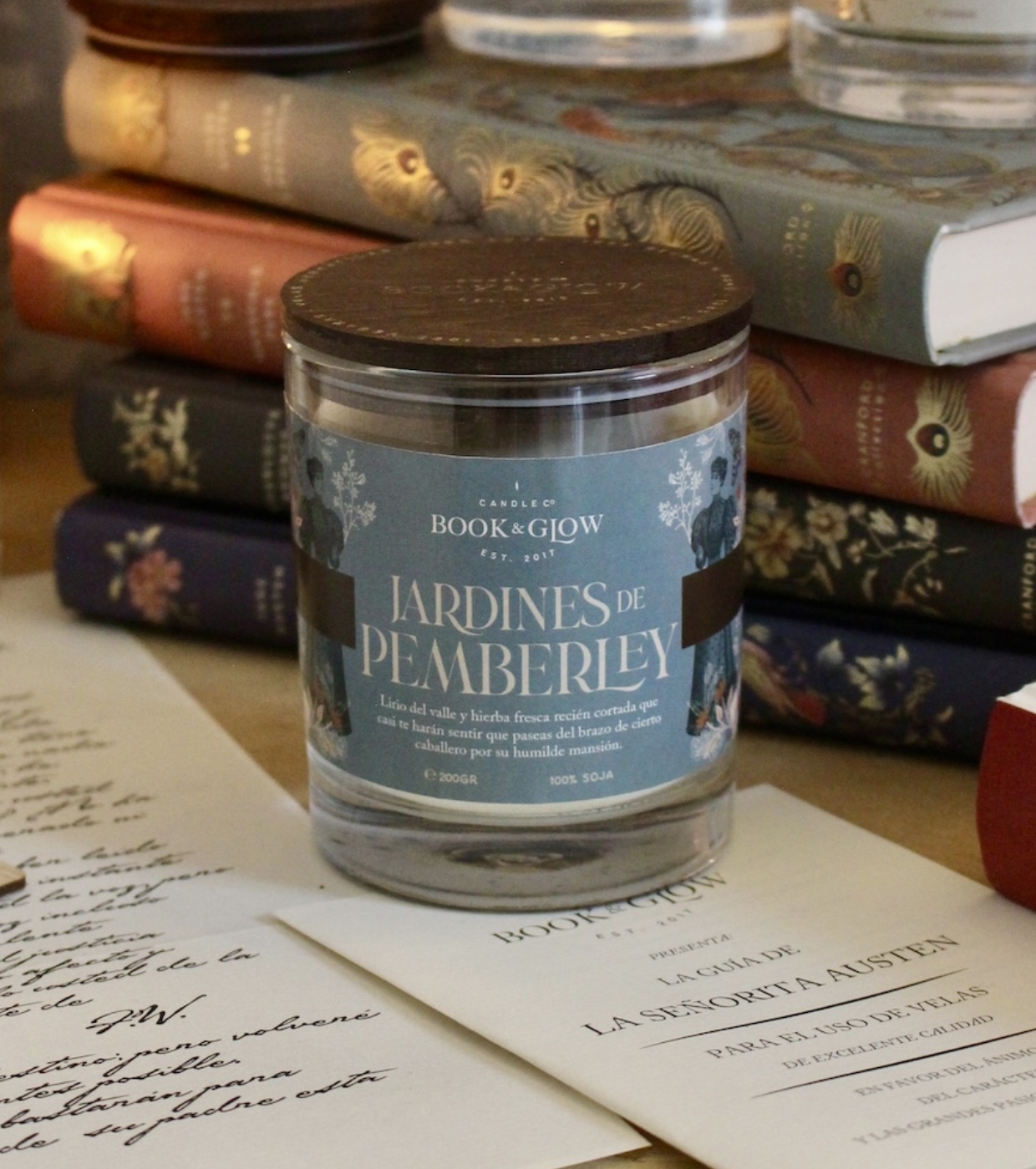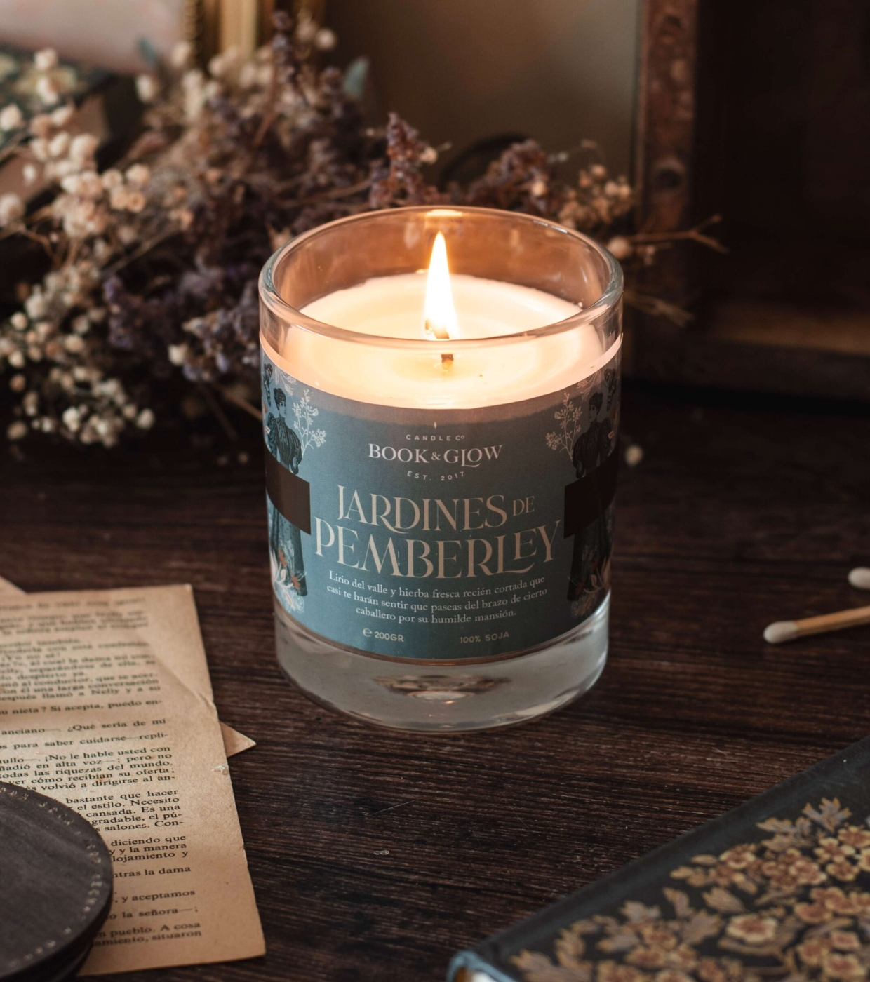 Vela de soja Jardines de Pemberley de Book and Glow.