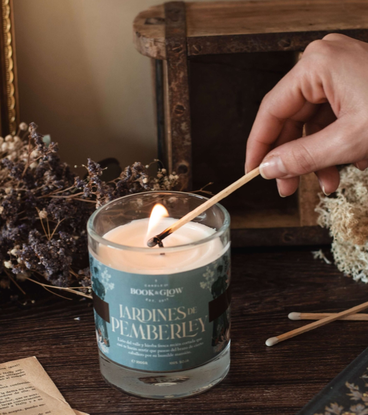 Perfecta para recordar un paseo con el señor Darcy por los jardines de su mansión, todo reunido en una vela.