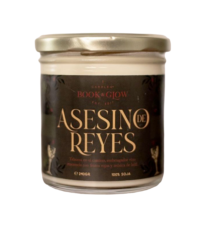 Vela de soja de la colección Mundos Extraordinarios de Book and Glow. Asesino de Reyes.