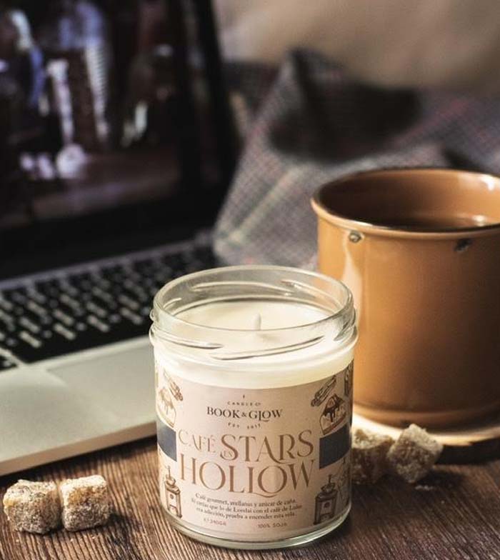 Vela de soja de la colección Mundos Extraordinarios de Book and Glow. Café en Stars Hollow (antes Luke's).