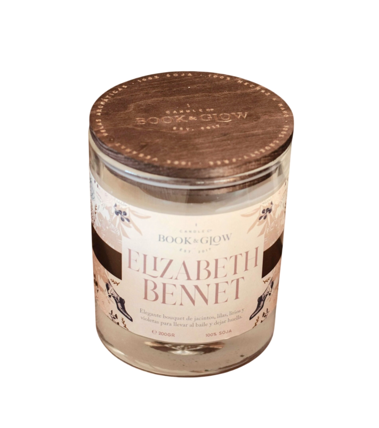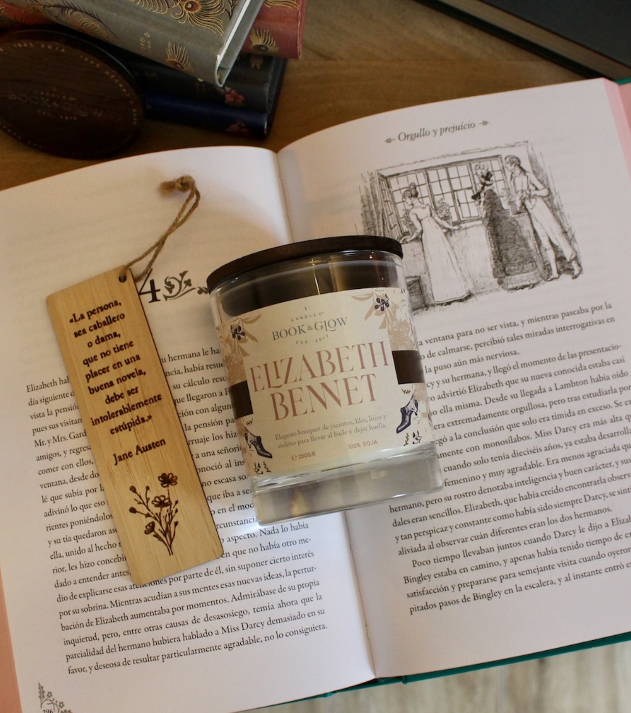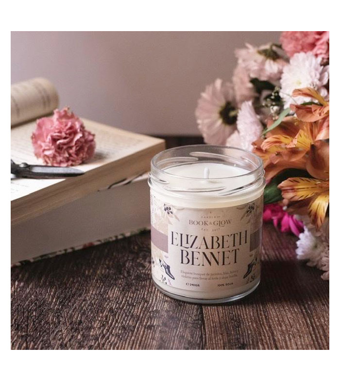 Vela de soja de la colección Mundos Extraordinarios de Book and Glow. Elizabeth Bennet.