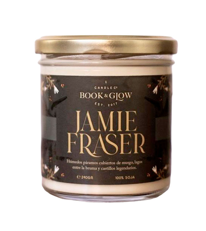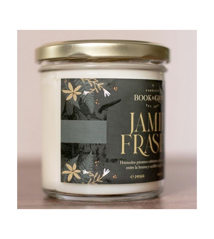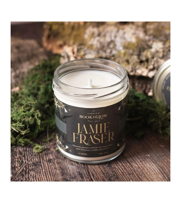 Vela de soja de la colección Mundos Extraordinarios de Book and Glow. Jamie Fraser.