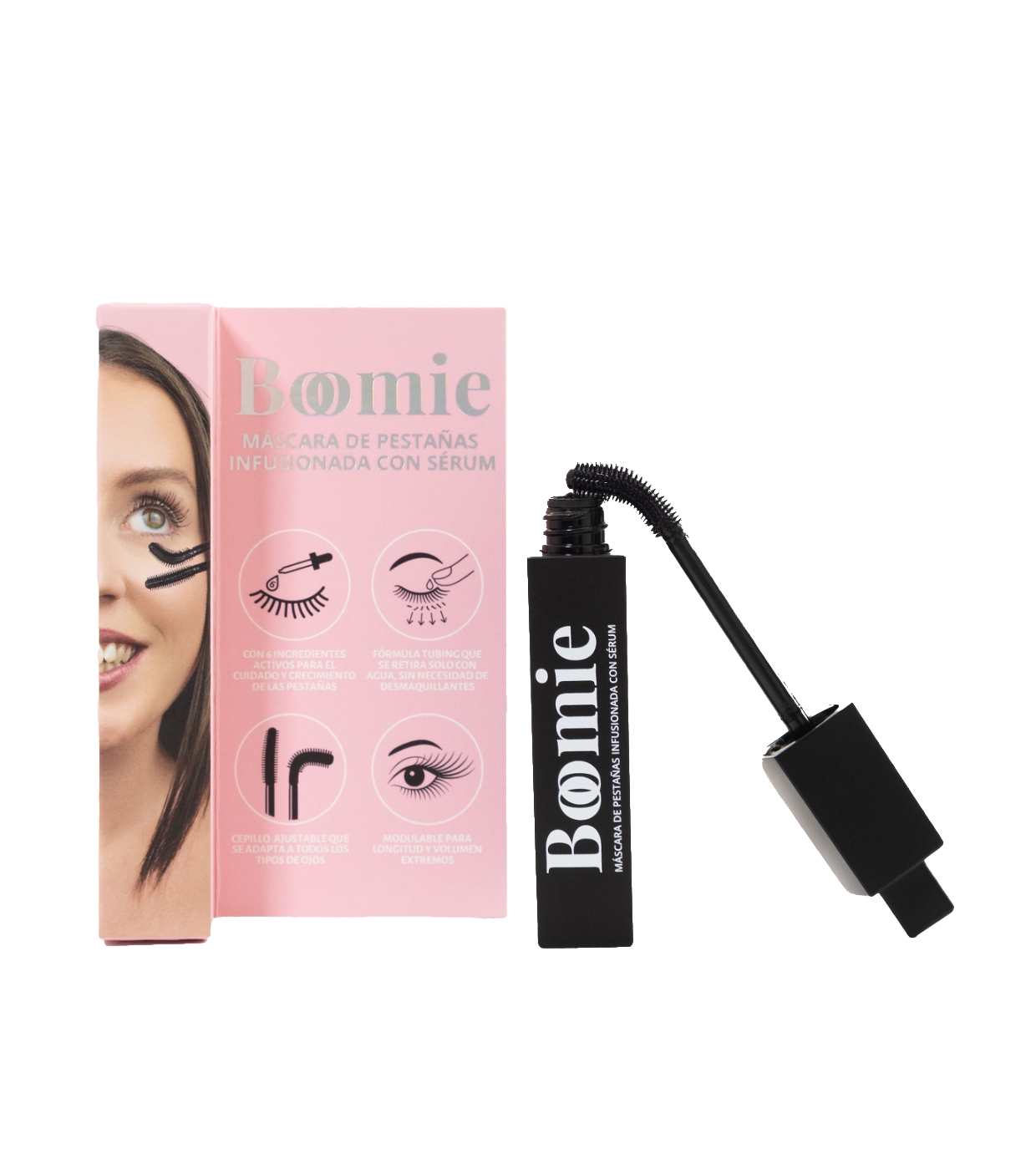 La Máscara de Pestañas de Boomie con Sérum es mucho más que una máscara: combina maquillaje profesional con tratamiento fortalecedor para transformar tus pestañas día tras día.