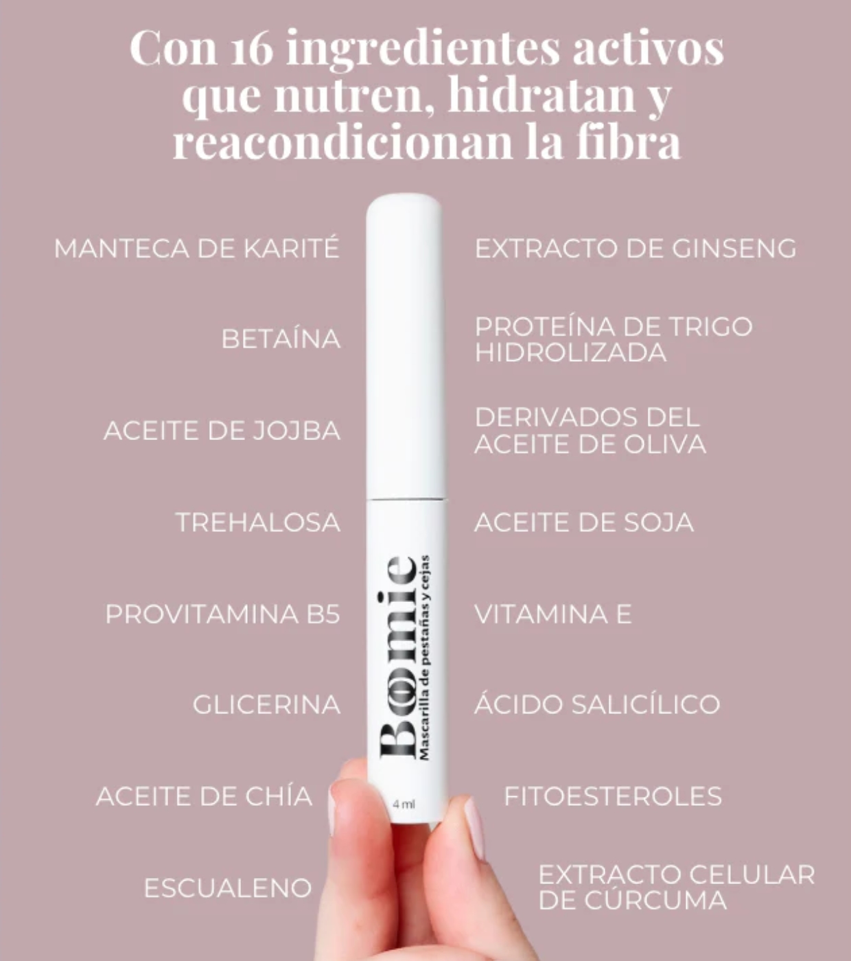 Descubre la mascarilla nutritiva para pestañas y cejas de Boomie formulada con un 86 % de ingredientes de origen natural, pensada para cuidar y fortalecer tu mirada día tras día.