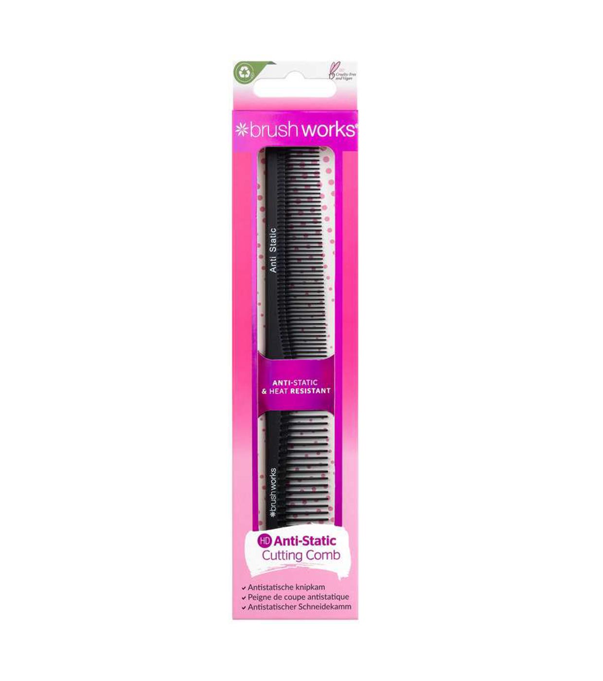El peine de corte antiestático de Brushworks se desliza sin esfuerzo por el pelo sin romperlo ni dañarlo, de forma delicada.