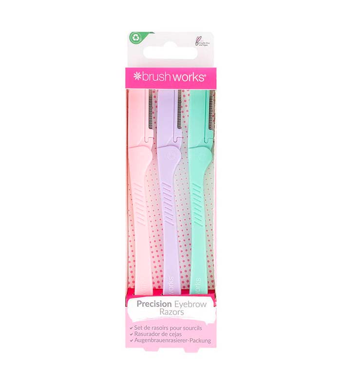 El recortador de cejas de 3 unidades de Brushworks elimina el vello sin dolor y ayuda a definir la forma de las cejas sin necesidad de pinzas o depilación.
