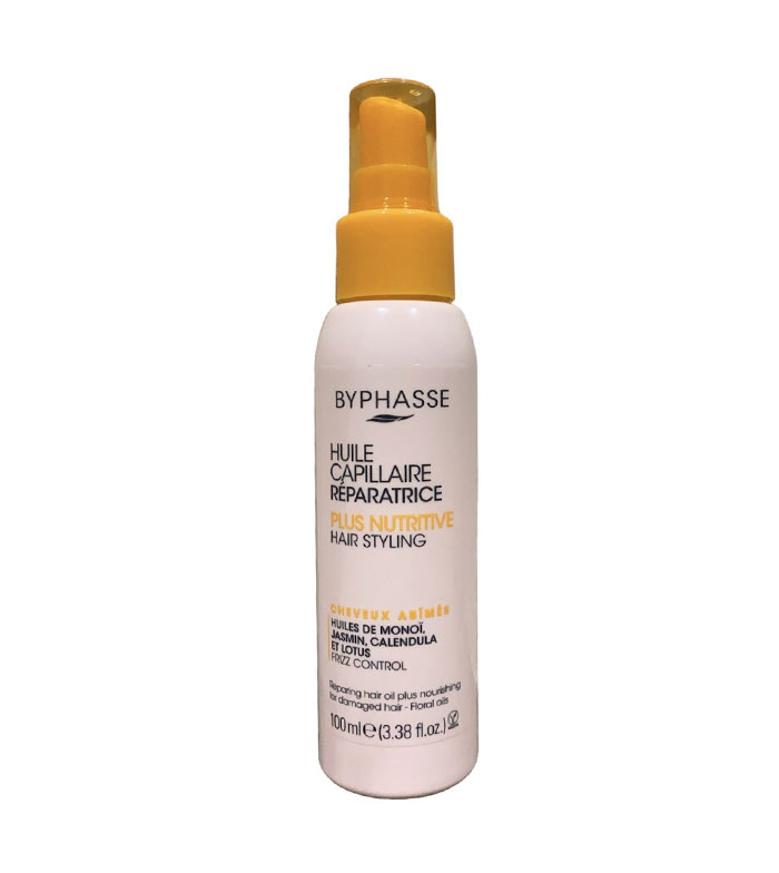 Un fantástico aceite reparador enriquecido con monoï, jazmín, caléndula y loto fortalece, suaviza y aporta luminosidad al cabello dañado.
