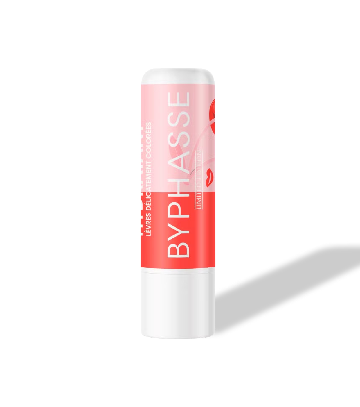 El bálsamo de labios Fruity en el tono Cherry de Byphasse repara los labios secos y agrietados, dejándolos con una sensación suave y un ligero tono rojo.