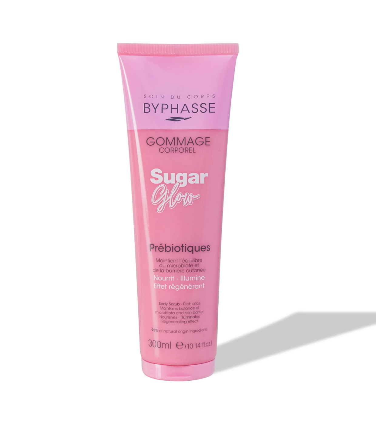 El exfoliante corporal Sugar Glow de Byphasse exfolia suavemente la piel gracias a sus partículas naturales de hueso de albaricoque y piedra pómez, que eliminan células muertas y revelan una piel más lisa, luminosa y deliciosamente perfumada.