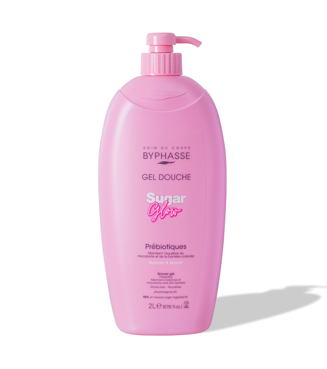 El gel de ducha Sugar Glow de Byphasse limpia, hidrata y nutre la piel gracias a su fórmula enriquecida con prebióticos de origen vegetal, que ayudan a mantener el equilibrio de la microbiota y refuerzan la barrera cutánea.